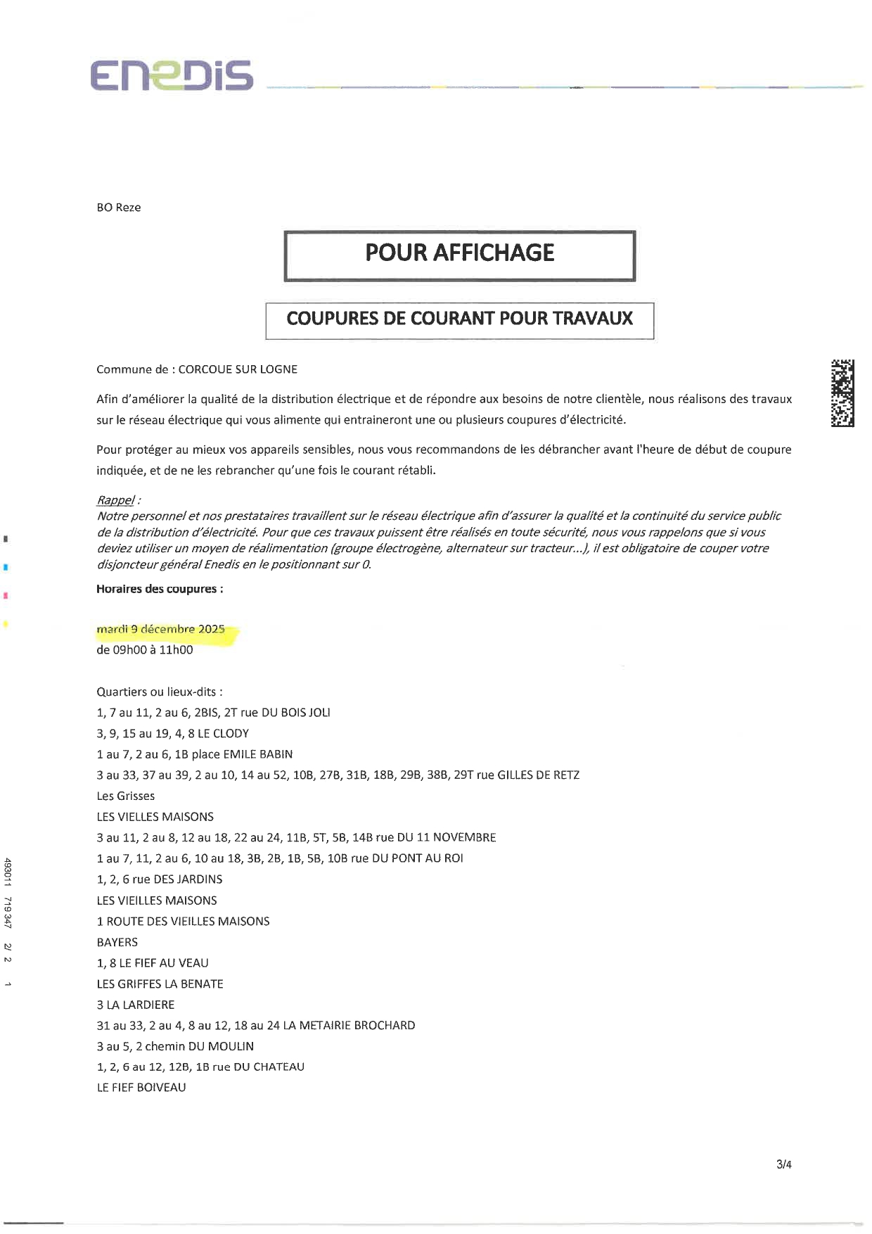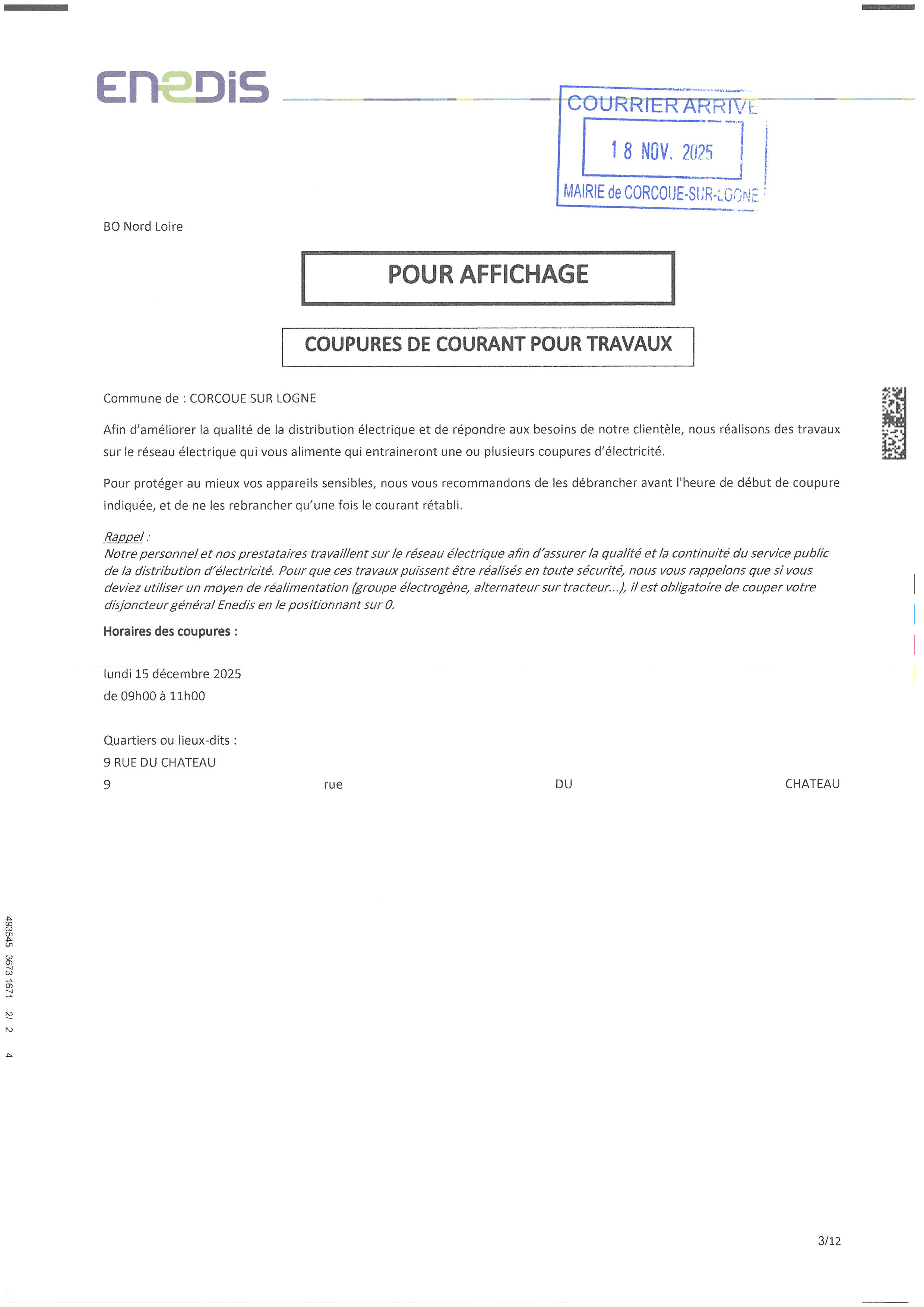Enedis nous informe que plusieurs coupures d'électricité auront lieu sur la commune, merci de prendre connaissance des documents suivants.