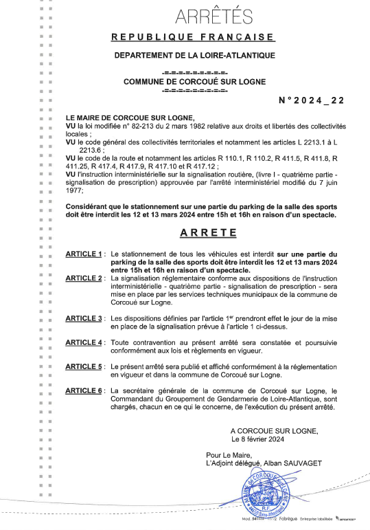 Arrêté N°2024_22 STATIONNEMENT - SALLE DES SPORTS